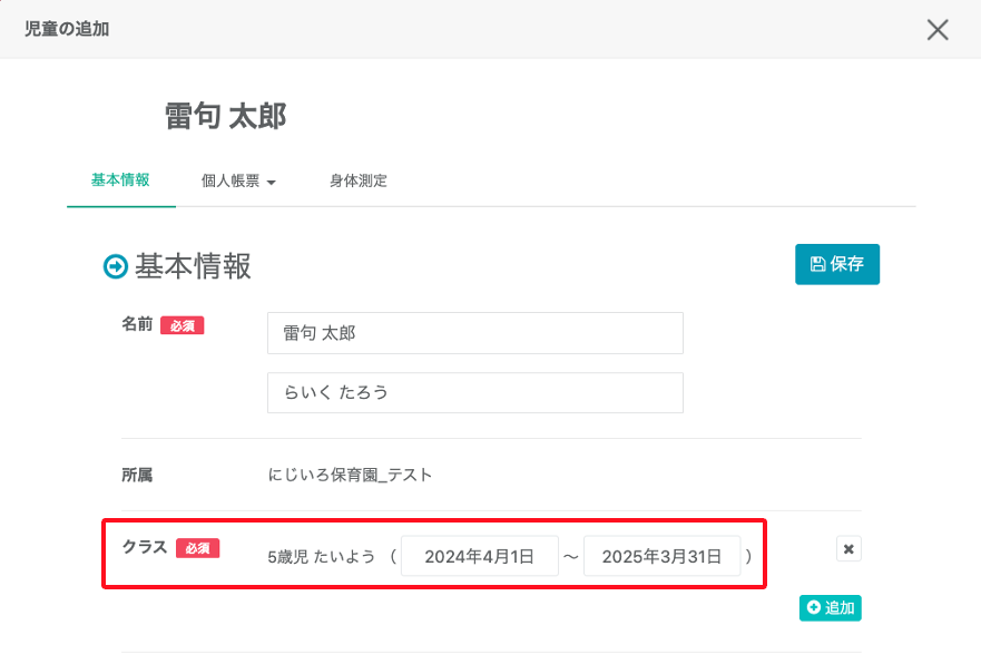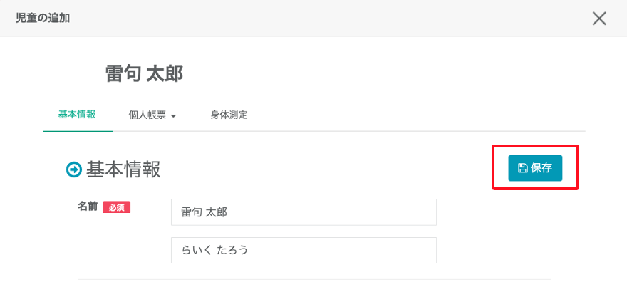 園側ではここで追加した情報は、児童台帳画面で確認することができます。