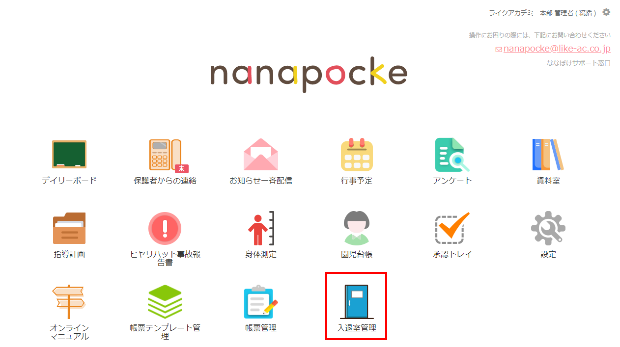 ダッシュボードから『入退室管理』をクリックします。
