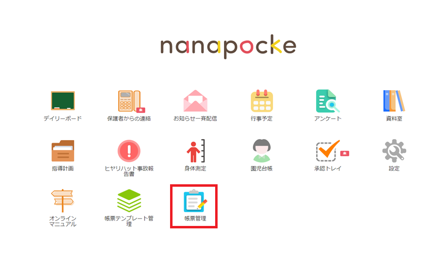 園から、自治体などへ提出すべき帳票や、保存しておく帳票を作成することができます。