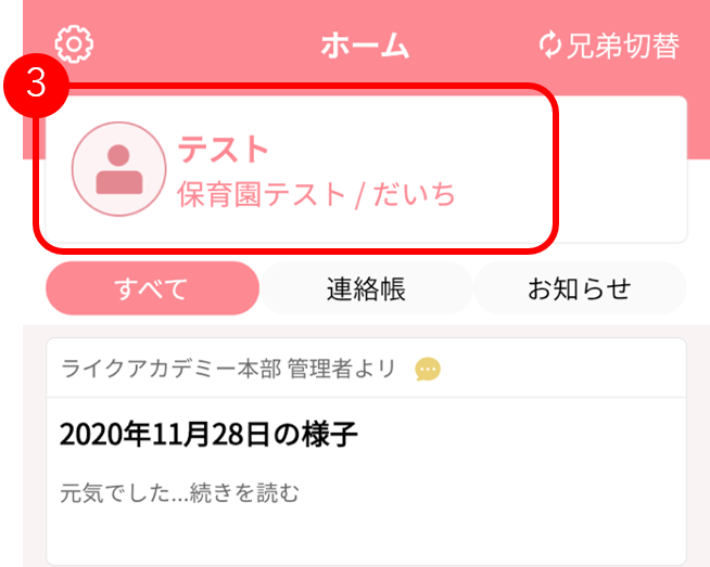 兄弟姉妹が同じ園に所属している児童の場合、アプリ上から児童を切り替えることができます。
