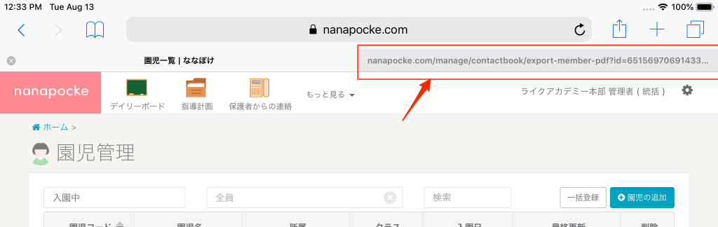 ※同じ園に兄弟・姉妹のいる児童は、児童名の右にある矢印をクリックすると、別の兄弟姉妹アカウントに切り替え表示することができます。