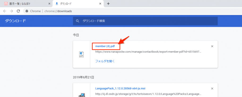ダウンロード画面が表示された中に「member.pdf」または「member(数字).pdf」の表示があれば、それが該当ファイルですので、リンクを選択して表示させてください。